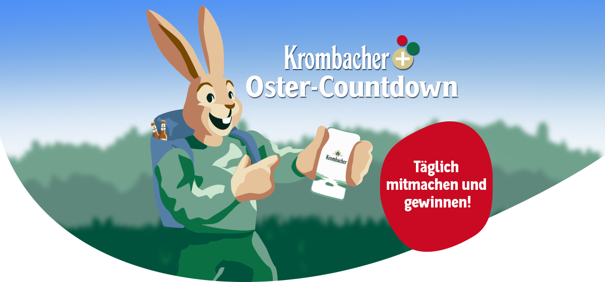 Der Osterhase nimmt dich mit auf eine spannende Reise: Jeden Tag öffnet sich in der Krombacher App ein neues Osterei – gefüllt mit spannenden Quizfragen und der Chance auf großartige Gewinne.