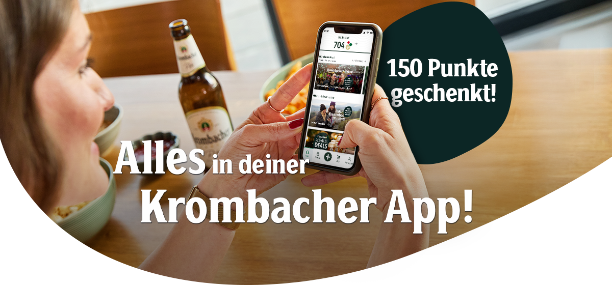 *Gültig für Kunden, die im Aktionszeitraum 28.01-08.02.2026 erstmalig die Krombacher App herunterladen. Die 150 Punkte werden nach der ersten Anmeldung in der Krombacher App automatisch gutgeschrieben.