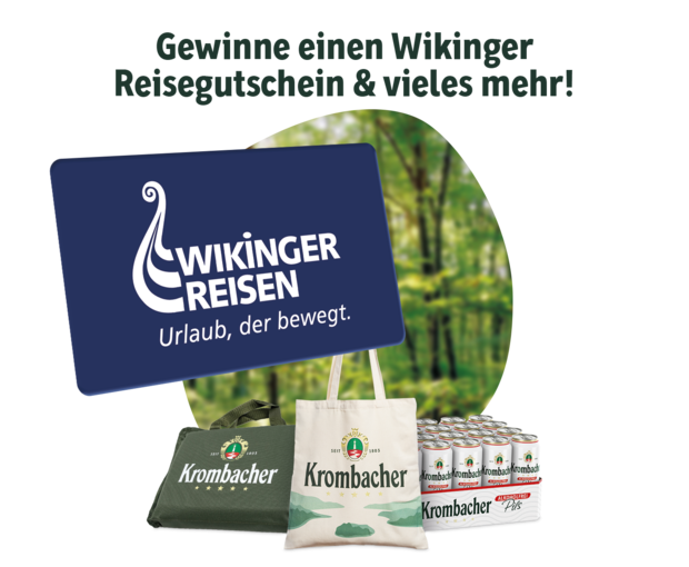 Du kannst vom 01.03.2026 - 19.04.2026 abstimmen und landest im Lostopf für die Krombacher Sofortgewinne sowie dem Jahres-Hauptpreis von Wikinger Reisen.