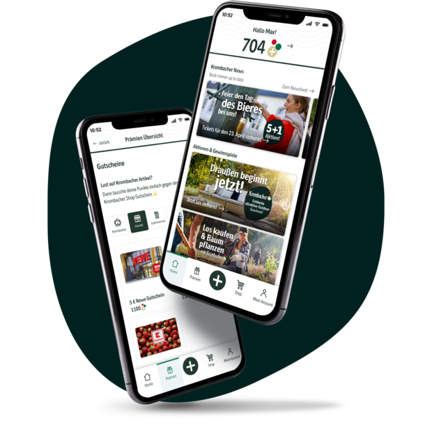 Lade den Kassenbon in der Krombacher App hoch und sammle Punkte. Dabei gilt 1 € = 10 Punkte.